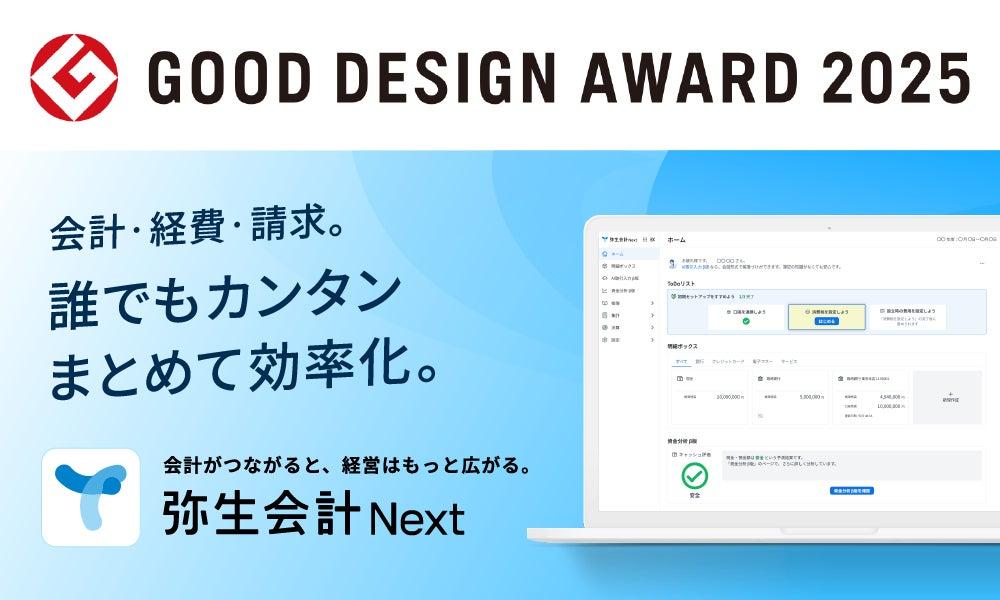 弥生株式会社は、提供するクラウド会計サービス「弥生会計 Next」が、2025年度グッドデザイン賞を受賞したことを発表しました。